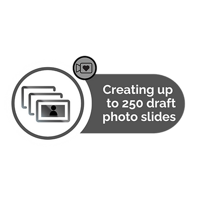 Get your fully sorted photo collection and draft slideshow in 30 minutes, and convert it to an event ready video in 15 minutes